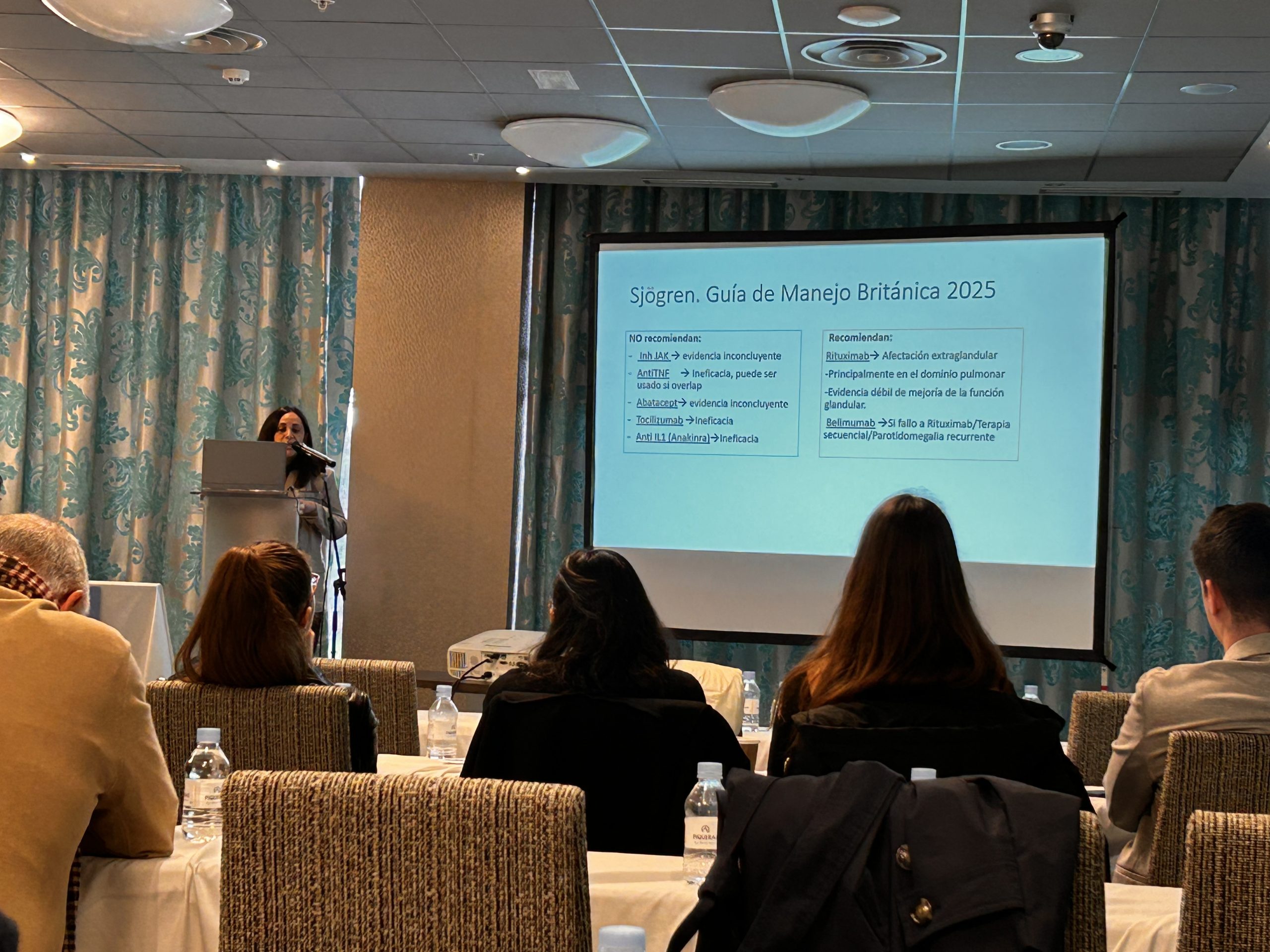 La jornada concluyó con actualizaciones sobre la enfermedad pulmonar intersticial en vasculitis ANCA (Dra. Guadalupe Manzano, reumatóloga del CAUZA), el inicio de terapia biológica en Sjögren (Dra. Ximena Larco, reumatóloga del H. Río Hortega) y el tratamiento a largo plazo de la osteoporosis Dr. Genaro Graña, reumatólogo del H. Universitario A Coruña.